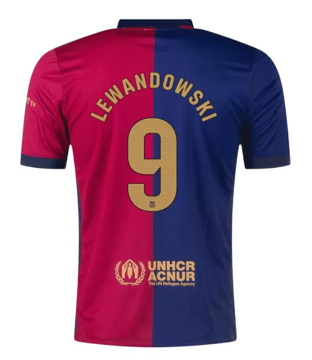 • Lewandowski 9 Barcelona Home Soccer Jersey 2024/25- Spotify Logo Without Text
