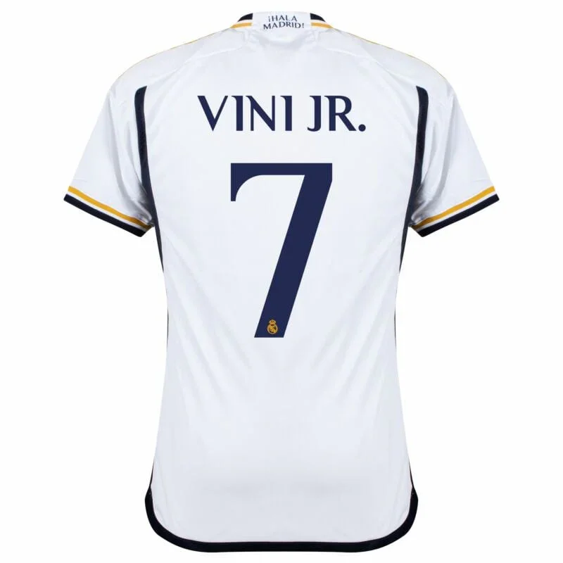 • Real Madrid Home Fan Jersey 2023/24 Vini Jr. 7 Patch FIFA WCC Patch UCL UEFA Foundation Patches