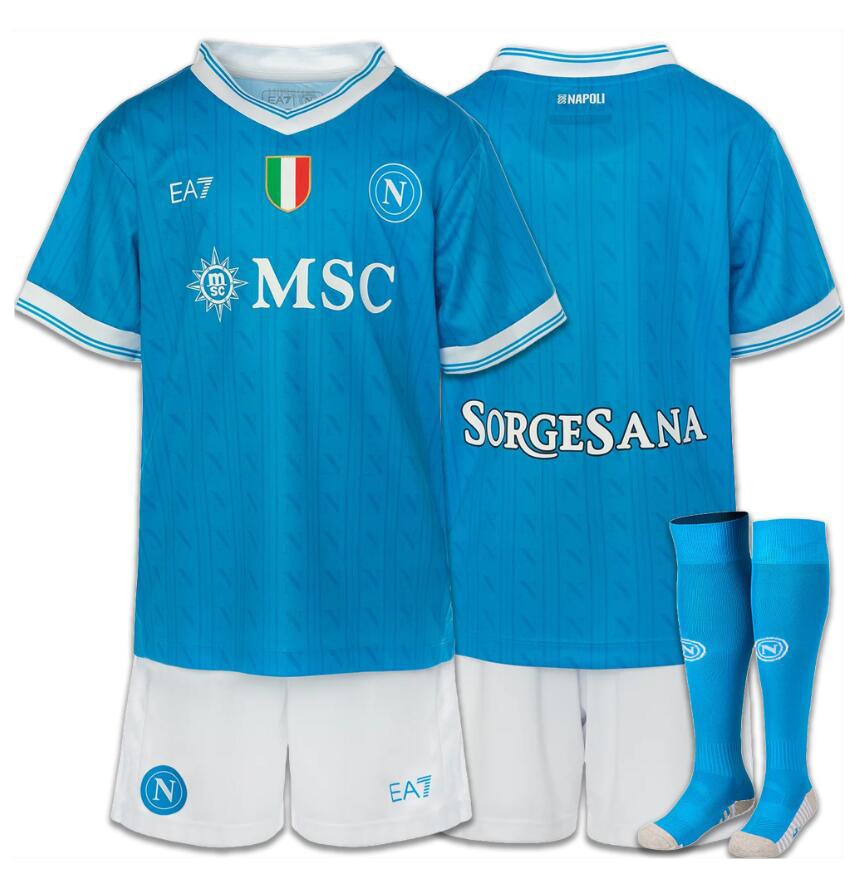 Kids Napoli Home Soccer Jersey Kit(Jersey+Shorts+Socks) 2025/26